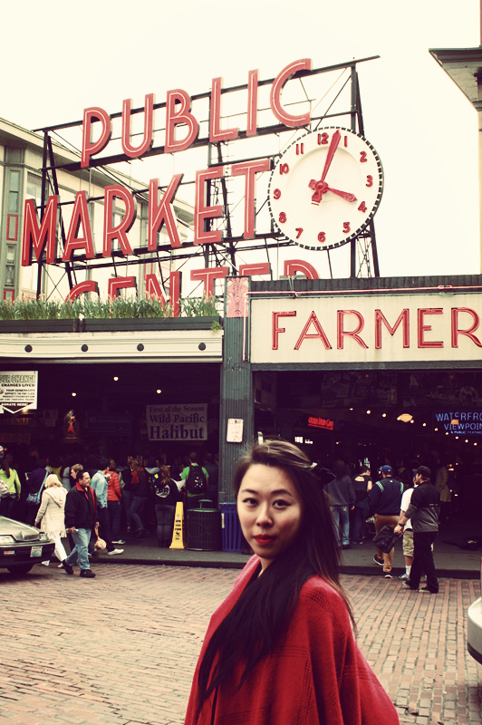Pike Place market has plenty of neat stuffs (probably over priced), but it is seem to worth it. I love to support local business and artists. Spending a day there cost me hundred of dollars. I purchased three bouquets of flowers, a set of couple shirts with guitar printing on that uses coffee bleach method (a T-shirt and a dress in same printing), one for me and one for my husband. Also, I got myself a 14k wired ring with a carol stone on (I was told carol is my birthday stone, January) for my pinky and a bracelet that is made out of recycle material (tires inside bicycle). The bracelet is also designed and made in Oregon by a local designer. I also spent money in plenty of yummy restaurants and cafes that keep my caffeinated all day long.